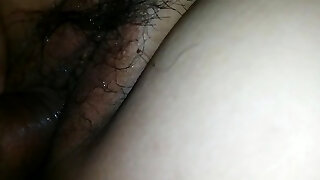 Naturally Breasted Dark-haired Amateur Gets a Creampie in Her Fur Covered Snatch