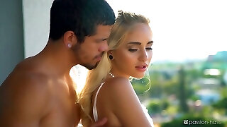 Ultra-cute and stunning blonde babe gets her soaking juicy gash banged doggy