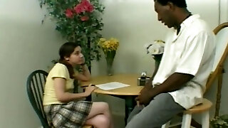 A nasty teenie sucks a dark-hued dick and rides it like a pro