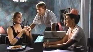 Teen gets anal nailed by two guys and takes their spunk on her face