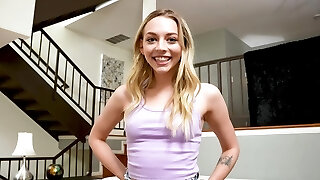 Slender blondie hottie deepthroats and rides boyfriend's big cock in homemade vid