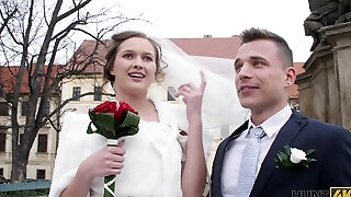 Huge-titted Brunette Bride Fucks With a Stray To Thank Him For Saving Her Behind Her Fiancé's Back