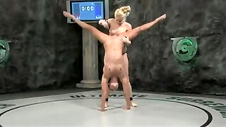 mixed wrestling blonde pins a guy and gives him a hand job