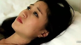 Busty asian brunette getting nicely fucked by a bf in a missionary pose