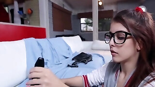 Bony babysitter Emilly Willis sucks a massive manhood and gets fucke
