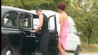 Bashful passenger cheats on his GF with naughty blonde taxi driver