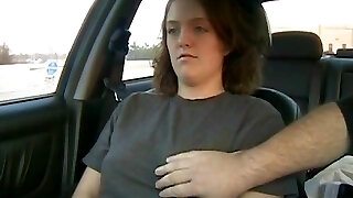 Flashing big baps in a car is so much joy and this lady is hardly shy