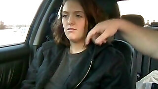 Sexy driver Emily Righ jerks off a dick in the car and gets her globes fucked on the bed