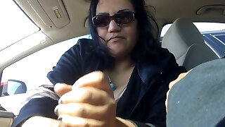 step mom sucks and Jerking OFF at the car wash in public. Cumshot