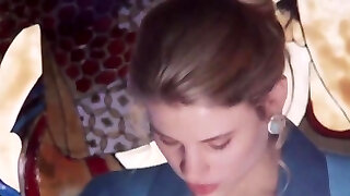 Cute short haired brunette babe tucks cock in her mouth
