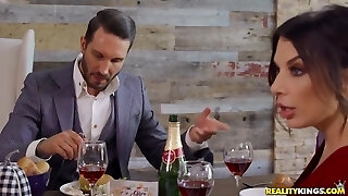 Infatuating waitress Keira Croft flashes her arse and enjoys sensual doggy