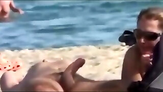 Beach handjob fun
