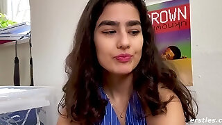 Brunette babe Lucy gets her palms on friend's hairy bone