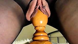 PinkTeenPussy masturbates giant dick and brings to orgasm