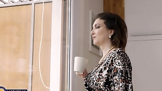 Mature housewife Lara takes off her taut dress and plays with playthings