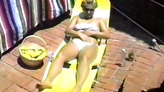 Blonde Cougar Olga Cabaeva wanks in retro nylon lingerie heels