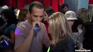European party babes suck cock in middle of club