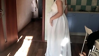 Hotwife showing her bitchy preggie body in tight bodysuit to her cuckold hubby and after masturbates to the climax - Milky Mari