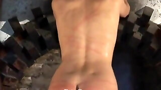 Slave with nice ass getting spanked while yelling in BDSM porn