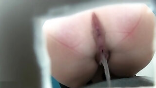 Pussy of a milky chick filmed closeup from behind in the rest room