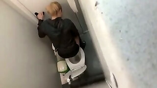 Nice pale flesh booty of a young chick in the public toilet room